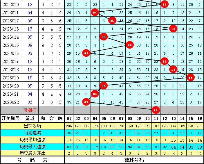 蓝球余数分析:最近10周星期四开出5个蓝球余数,重叠蓝球余数彰着活跃,本期抛弃近期已出现的蓝球余数,属目温冷蓝球余数回补,温雅蓝球11。